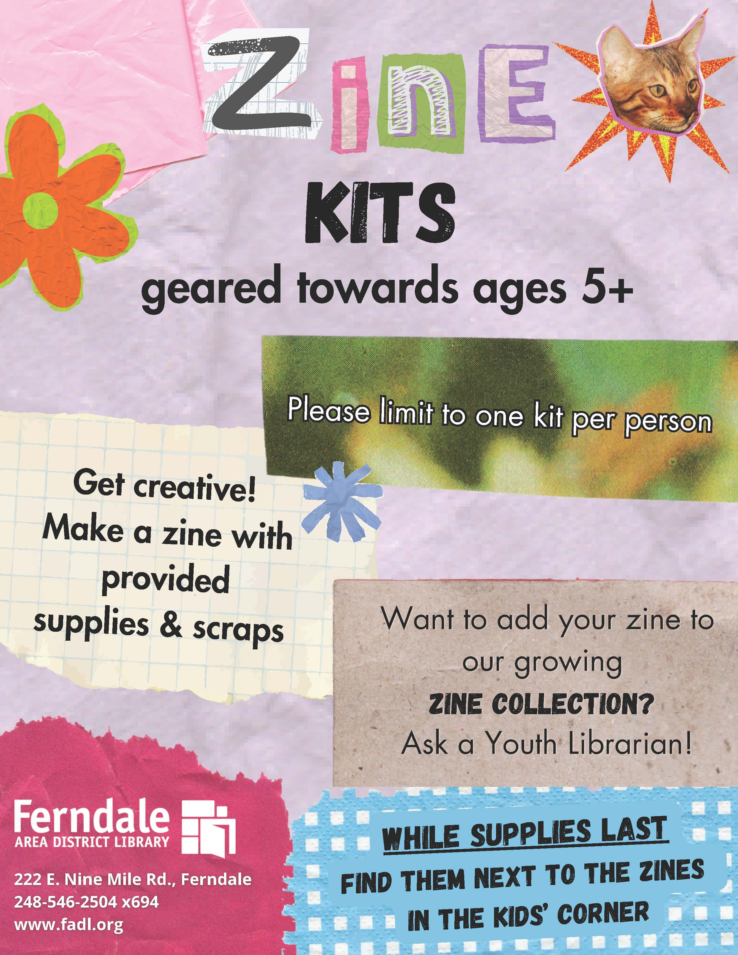 FYI: Kits will be available for pick-up next to the Zine Collection in the Kids Corner; limit one per person, please!