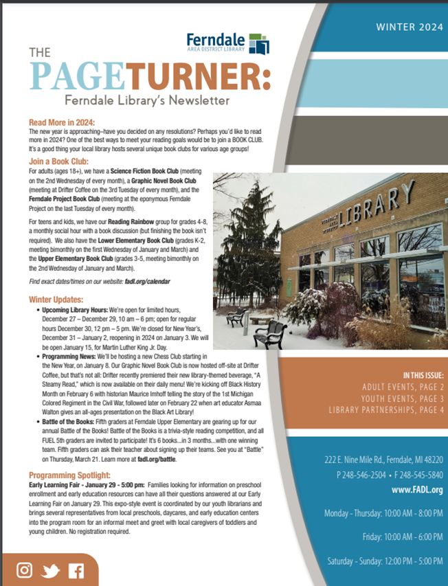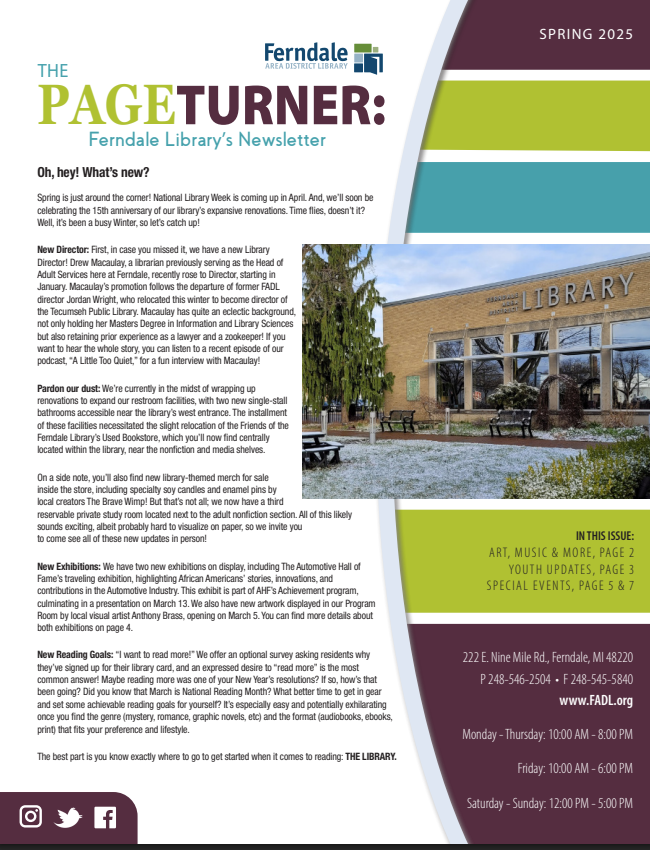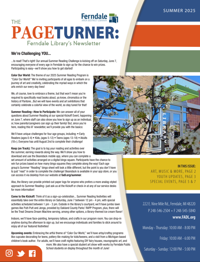 Latest Issue Previous Editions of FADL's Print NewsletterSummer 2025 NewsletterSpring 2025 NewsletterWinter 2025 Newsletter Fall 2024 Page TurnerFall 2024 Newsletter Summer 2024 Page TurnerSummer 2024 Newsletter Spring 2024 NewsletterSpring 2024 Winter 2024 Fall 2023 Summer 2023Winter-Spring 2023 FALL 2022 SUMMER 2022 WINTER-SPRING 2022 OCTOBER 2021 NEWSLETTER